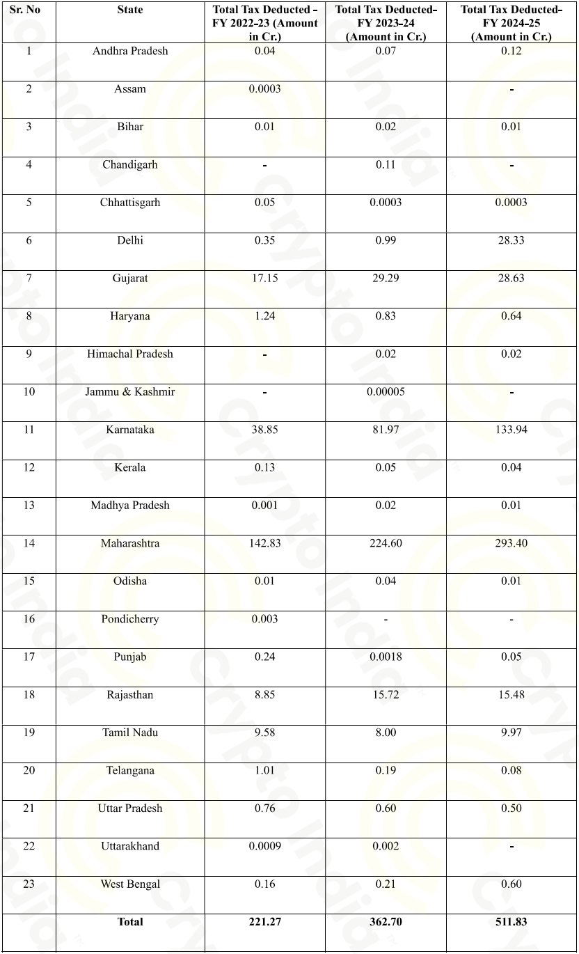 The data covers seizures, arrests, tax demands, search operations & TDS compliance checks across multiple financial years. Together, the findings show a coordinated push to bring all crypto activity under India’s tax and reporting framework.