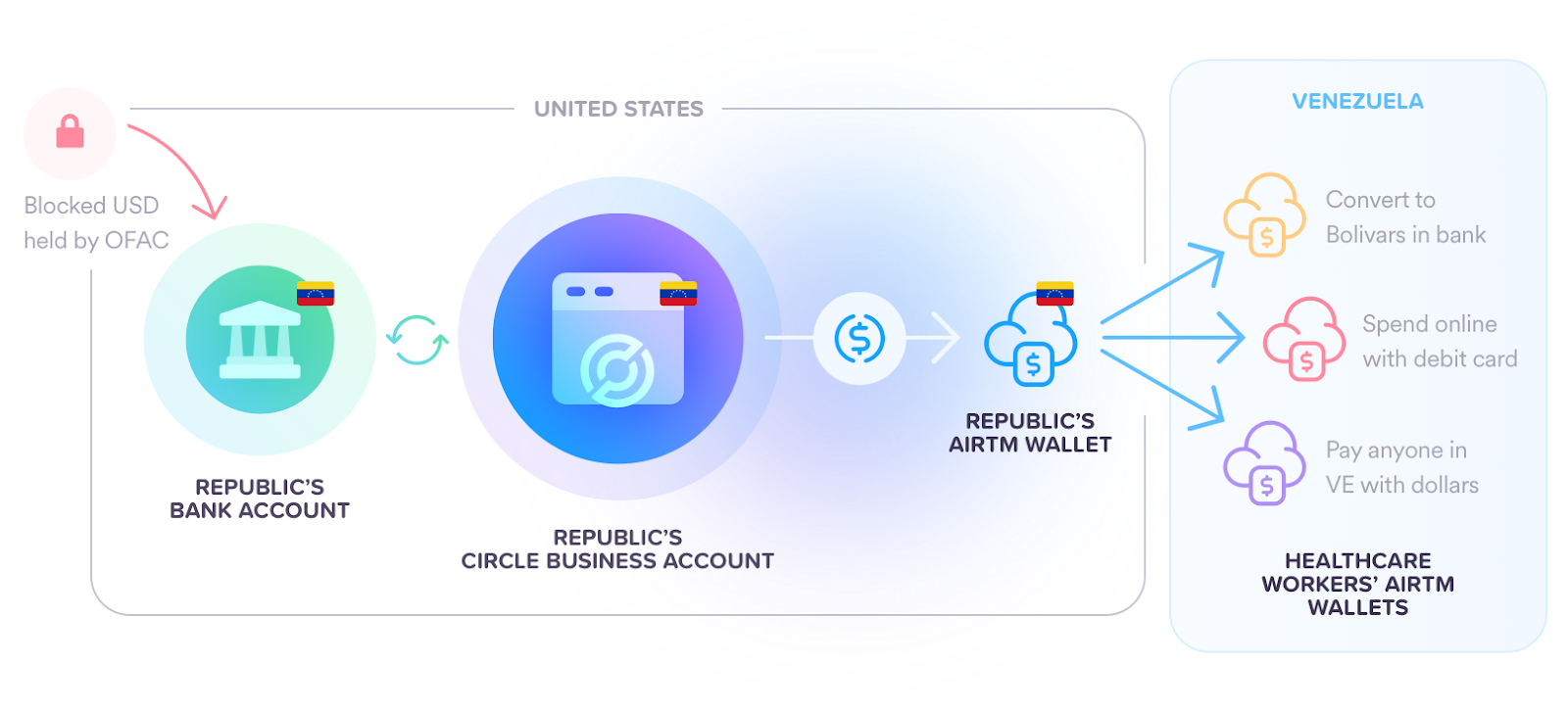 Circle announced partnership with Airtm to help Juan Guaido's government to fight against COVID 19 and support healthcare workers in Venezuela by transferring USDC.