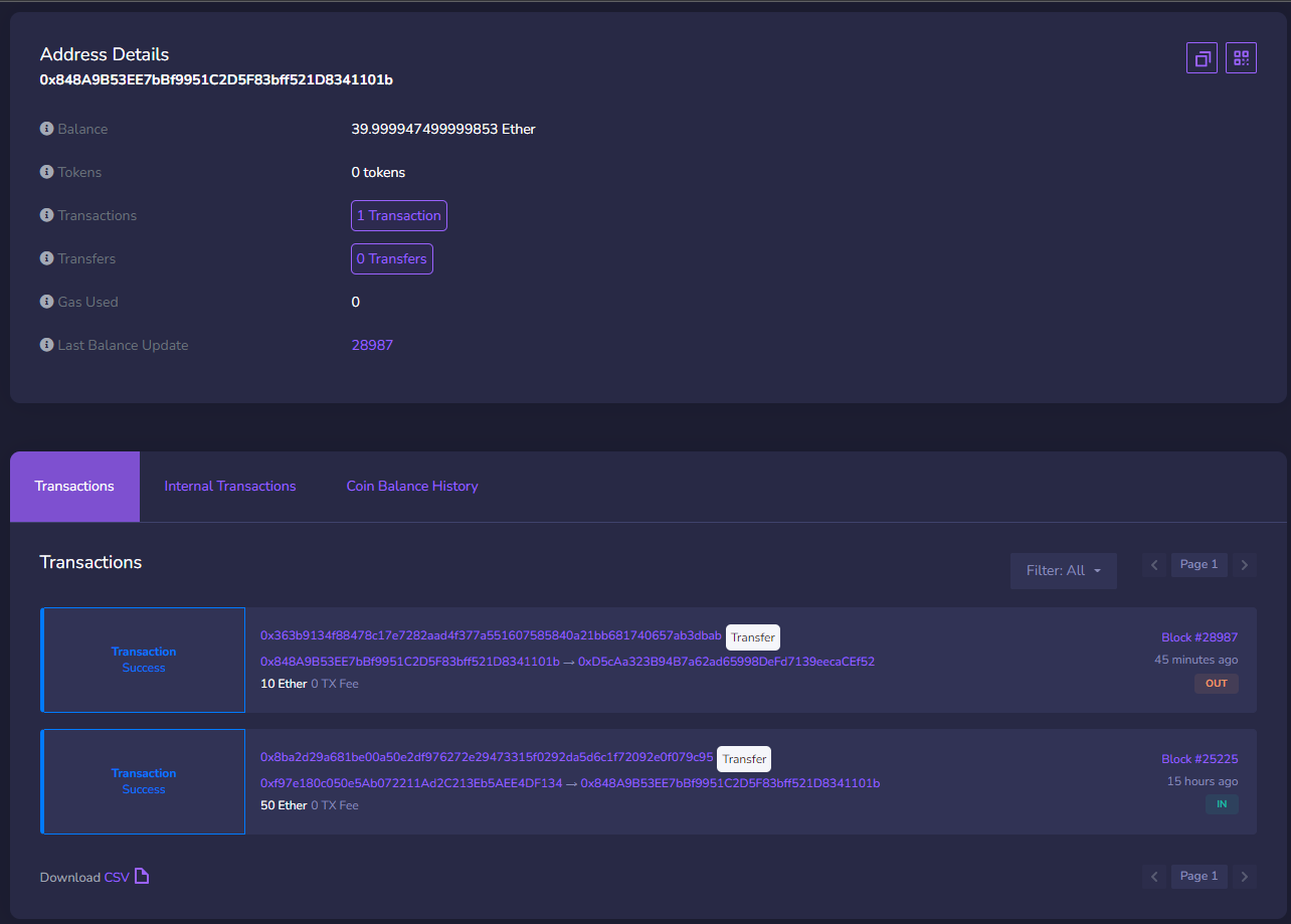 In this section we will transfer some ETH from Account 1(0x848A9B53EE7bBf9951C2D5F83bff521D8341101b) to Account 2(0xD5cAa323B94B7a62ad65998DeFd7139eecaCEf52) in Kintsugi Testnet. Here we have 50ETH from the faucet in Account 1 which he have transferred in the last section.