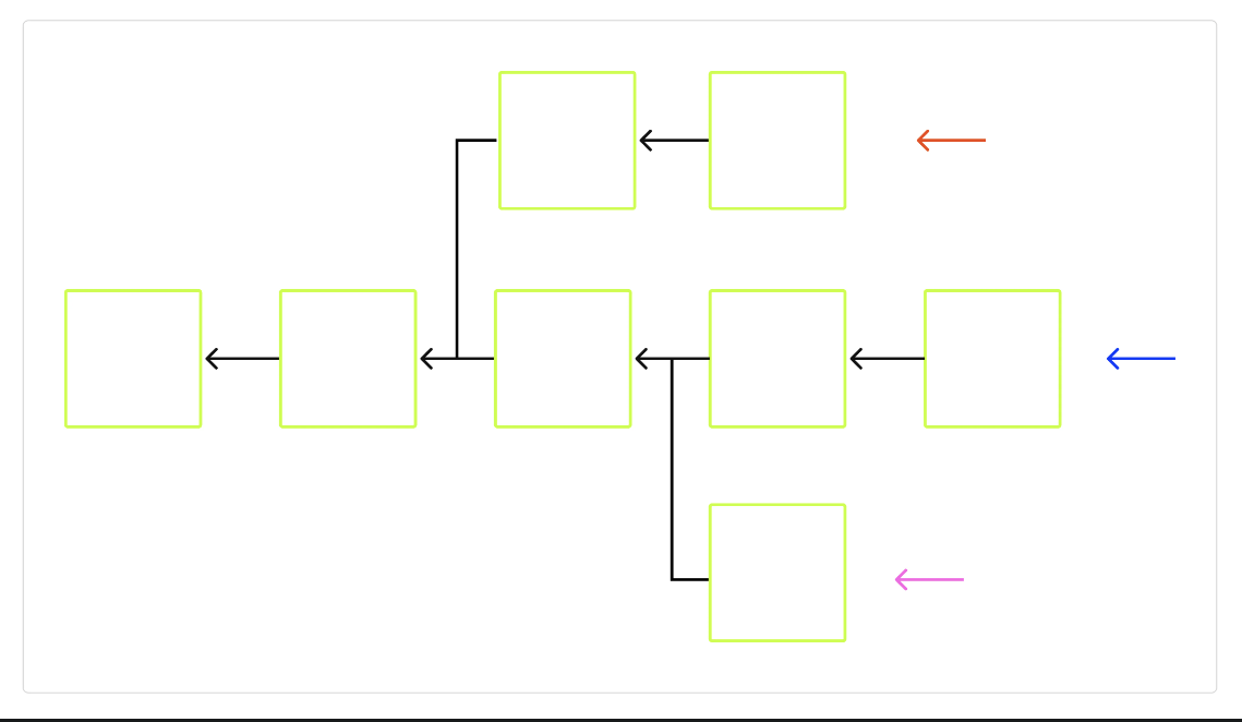 Think of these votes as validators saying, "Hey, this event looks right to me!" In the picture, you see three possible events marked by pink, orange and blue arrows. These are like different suggestions for the next part of the story.