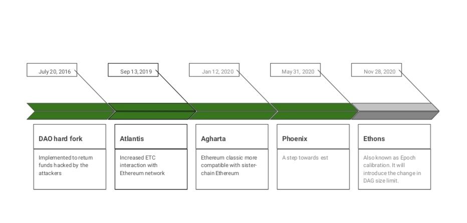 Ethereum Classic is an outcome of Ethereum hard fork that resulted in ETC and ETH blockchains. The Thanos is also known as EIP-1099(Epoch calibration) is an upcoming upgrade on ETC. Ethereum Classic has implemented upgrade thrice till date. This year, Ethereum Classic implemented two hard forks Phoenix and Agharta which included features from Ethereum's Istanbul fork and Constantinople fork respectively. ETC implemented its first hard-fork Atlantis on September 13 (2019) at block number 9,573,000. Agharta took place on January 12 (2020) at block number 8,772,000 and the third fork, Phoenix  implemented on May 31, 2020 at block number 10,500,839.