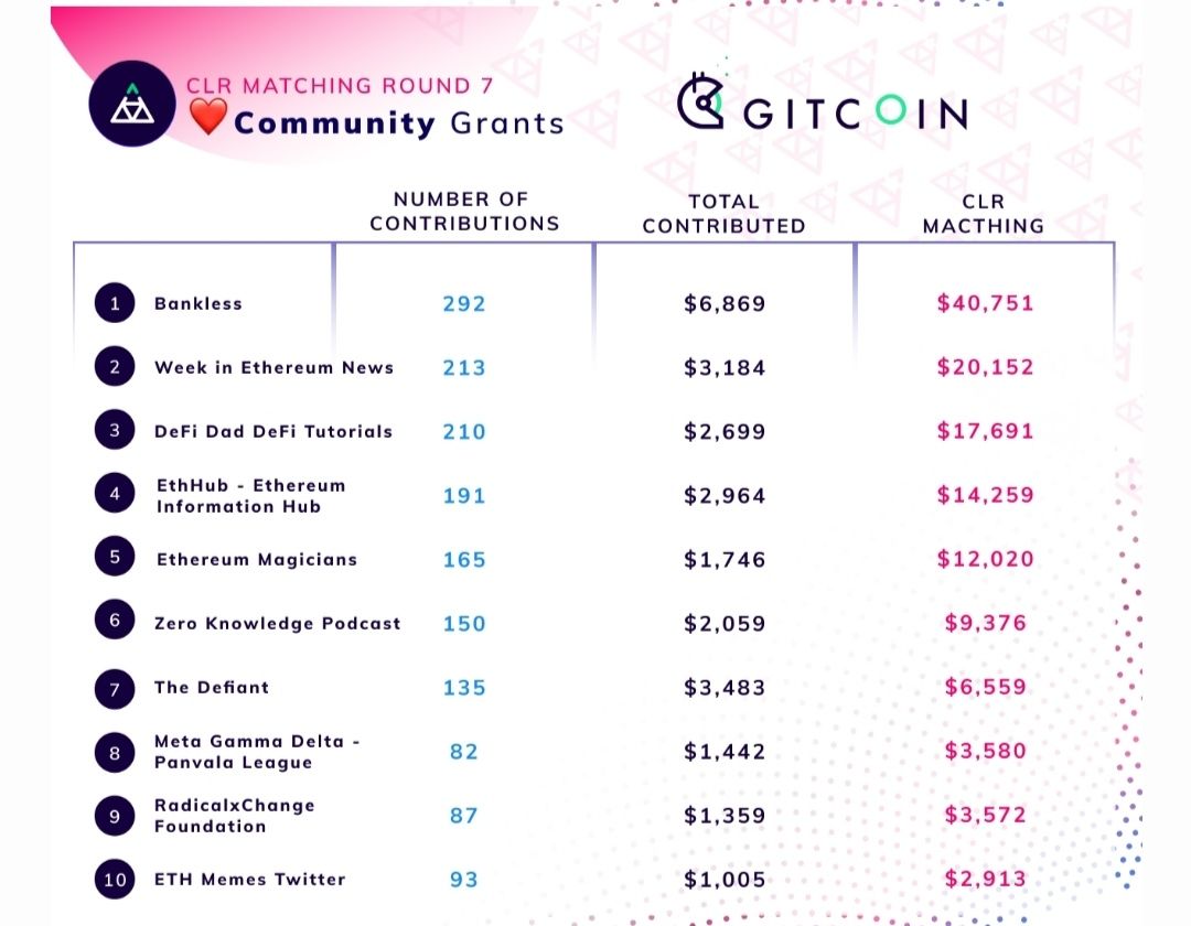 Gitcoin Round 7 concluded with highest than ever CLR matching